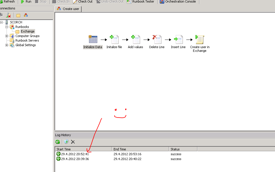SC 2012 – Orchestrator – on different server – with Exchange 2010 console instaled + SP2 applied