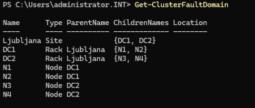 Set-ClusterFaultDomain -Name DC1 -FaultDomain Ljubljana